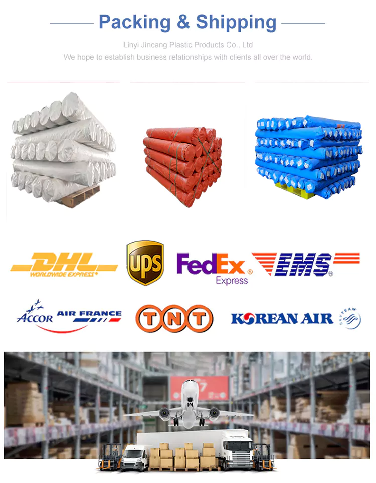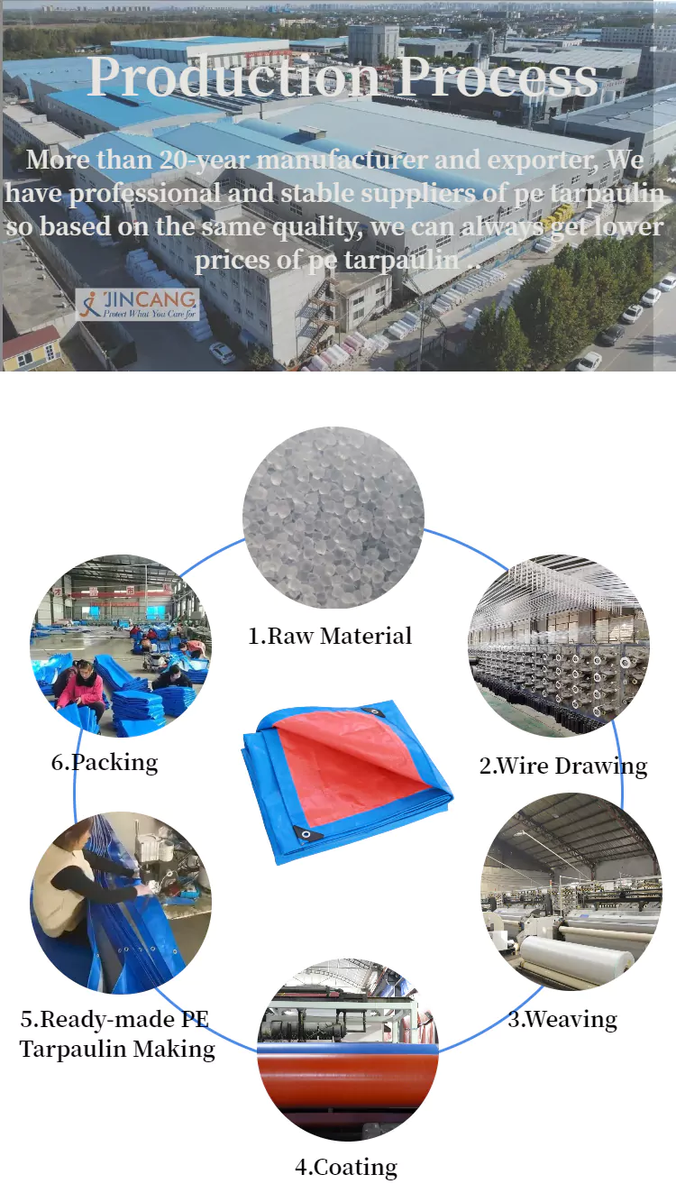 జిన్‌కాంగ్ చైనాలోని ప్రొఫెషనల్ PE టార్పాలిన్ రోల్ తయారీదారులలో ఒకరు, 110 GSM స్ట్రిప్ PE టార్పాలిన్ రోల్ మన్నిక మరియు దృశ్యమానతను మిళితం చేస్తుంది, పాలిథిలిన్ యొక్క జలనిరోధిత లక్షణాలను బాగా కనిపించే రంగుల చారలతో కలుపుతుంది. ఇది బహిరంగ రక్షణ, కవరింగ్ వస్తువులు, నిర్మాణ స్థలాలు మరియు వ్యవసాయ అవసరాల కోసం విస్తృతంగా ఉపయోగించబడుతుంది.