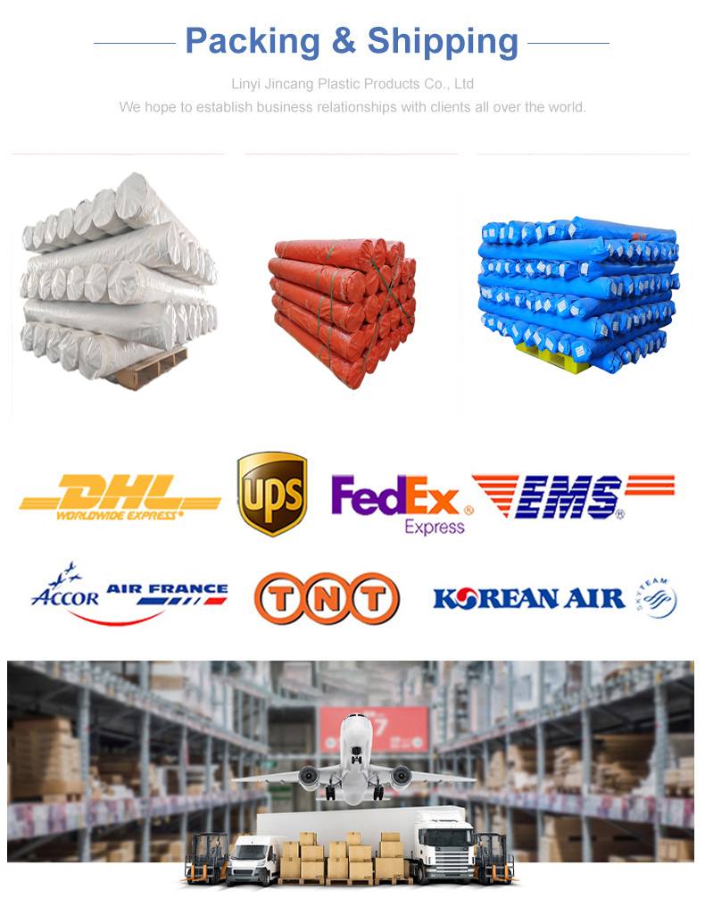 సాధారణంగా, మేము బేల్ ద్వారా ప్యాక్ చేస్తాము. వ్యక్తిగత ప్యాకింగ్: పాలీ బ్యాగ్+ డిజైన్ లేబుల్. బేల్ ప్యాకింగ్: ఒక నిర్దిష్ట పరిమాణంలో టార్ప్‌లను బేల్‌లో ఉంచారు.