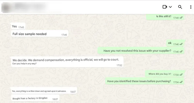 ఒక కస్టమర్ పోటీదారు నుండి టార్పాలిన్ ఆర్డర్‌తో తీవ్రమైన సమస్యలను ఎదుర్కొన్నారని మేము ఇటీవల తెలుసుకున్నాము. వారు తక్కువ ధరతో ఆకర్షించబడ్డారు మరియు కర్మాగారం ఉత్పత్తిని పూర్తి చేయడానికి చివరికి రెండు నెలలు పట్టింది. డెలివరీ తర్వాత, ఉత్పత్తి స్టాక్ అయిపోయిందని మరియు వారు మొదట అంగీకరించిన పరిమాణంలో లేదని వారు కనుగొన్నారు. కస్టమర్ ప్రస్తుతం చట్టపరమైన చర్యలను పరిశీలిస్తున్నారు. ఈ కస్టమర్‌తో నా కమ్యూనికేషన్ యొక్క లిప్యంతరీకరణ క్రింద ఉంది.